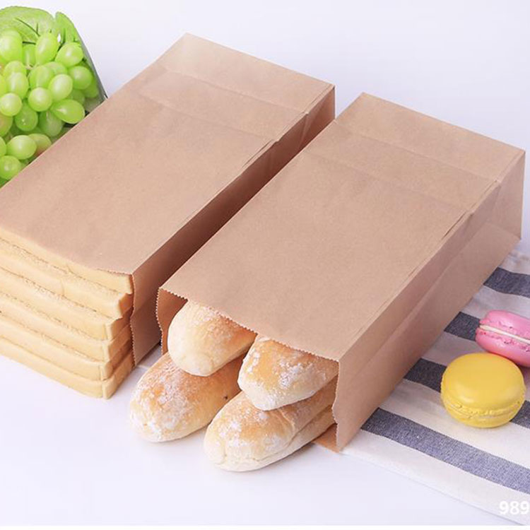 Пакет из крафт-бумаги с плоским дном подходит для упаковки таких продуктов, как хлеб, тосты, ветчина, сэндвичи, колбасы и т. д.
