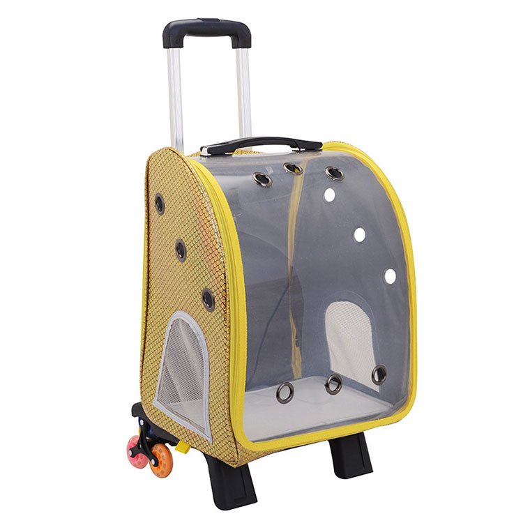 Наша переноска с дышлом для кошек оснащена роликами, которые удобны для перевозки ваших питомцев. Три стороны оснащены молниями, поэтому домашних животных легко складывать и вынимать из переноски. Его также можно использовать как рюкзак.