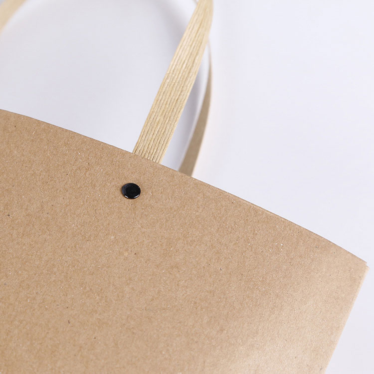 Ручка пакета Rivet Kraft Paper усилена заклепками, которые не только красиво выглядят, но и долговечны. Плоская ручка увеличивает площадь контакта и делает ваши руки более удобными. Внизу не будет грязного клея, а дно прочное, его нелегко сломать. Сумка удобна в упаковке и хранении.